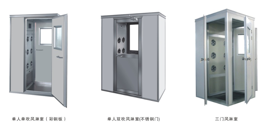 按照規格可分為:單人單吹風淋室,單人雙吹風淋室,雙人雙吹風淋室等。也可按照需求定制多人多吹、貨淋室、通道風淋等。